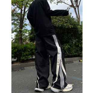 复古休闲裤 青少年运动长裤 男款 高街撞色拼接侧条纹直筒裤 春季 美式