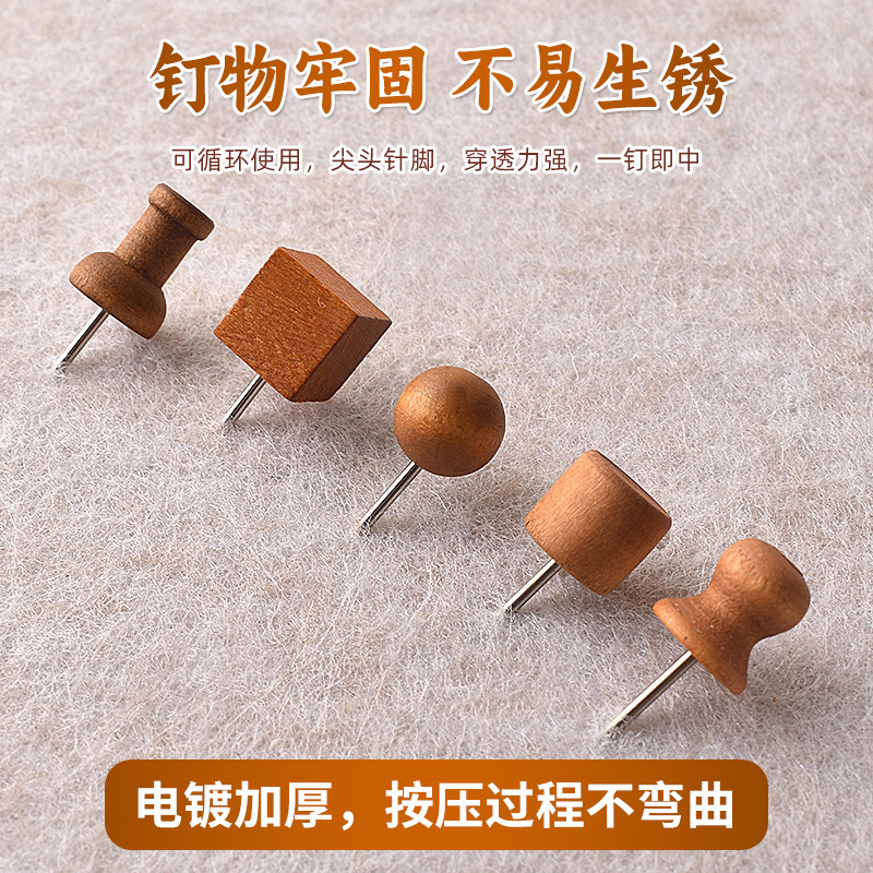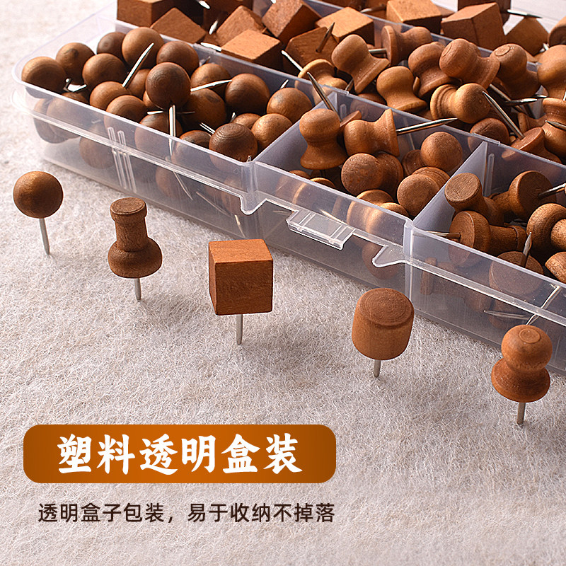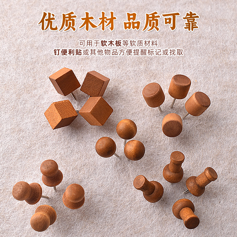 创意小方块图钉木制按钉软木板留言板照片墙文教钉子盒装 大头针