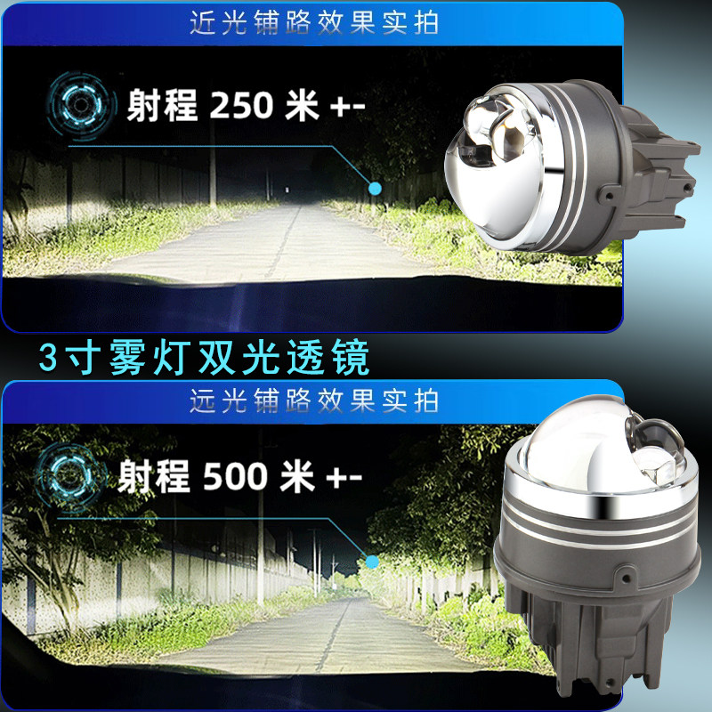 汽车激光雾灯双色透镜聚光超亮黄金光改装 爆闪H119006H7H8LED灯泡