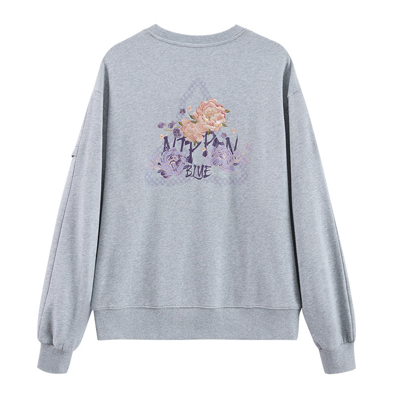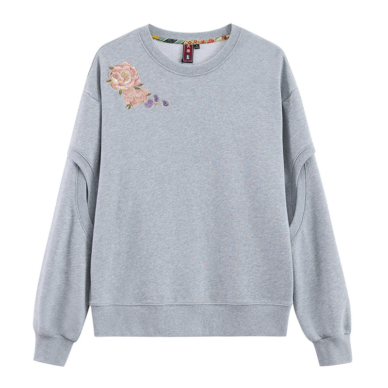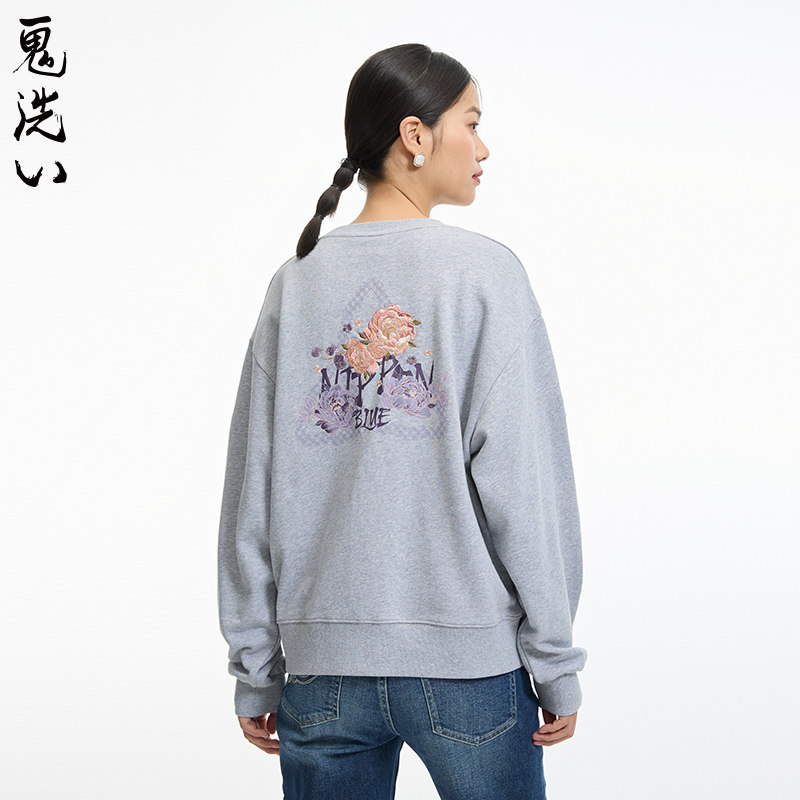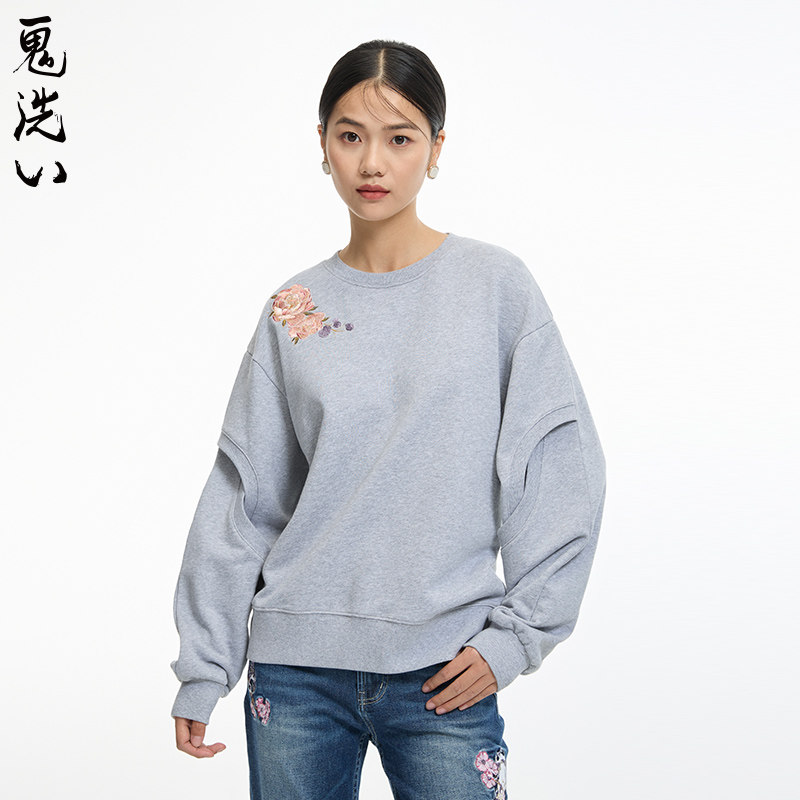 ONIARAI N240139 鬼洗24秋泥棒蓝女生牡丹绣花镂空拼接套头卫衣