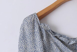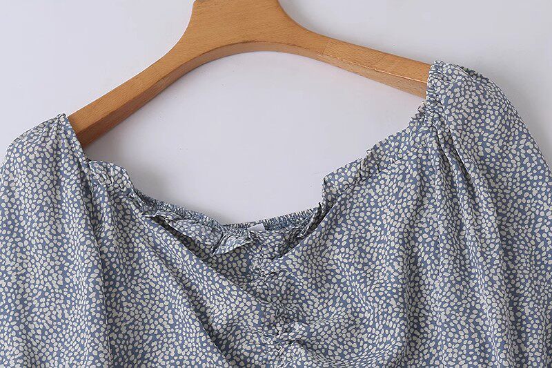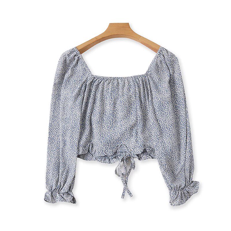 春秋新款 露脐衬衫 女套头打底上衣 点点方领短款 小衫 五分袖