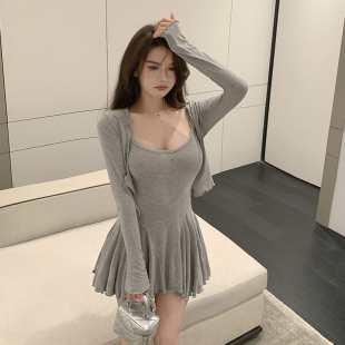 短裙纯欲 吊带裙子白修身 夜总店性感连衣裙女低胸两件套装 辣妹春季