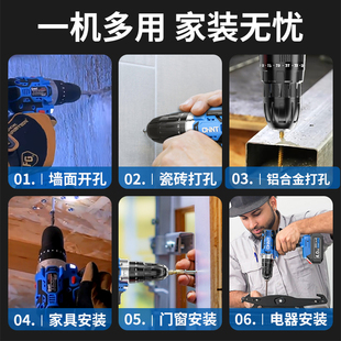 手电钻家用充电无刷锂电大功率维修冲击钻孔多功能工业电动螺丝刀