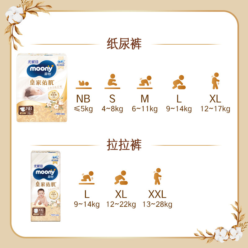 尤妮佳moony慕怡皇家新升级超薄透气腰贴纸尿裤 新生儿尿不湿NB78