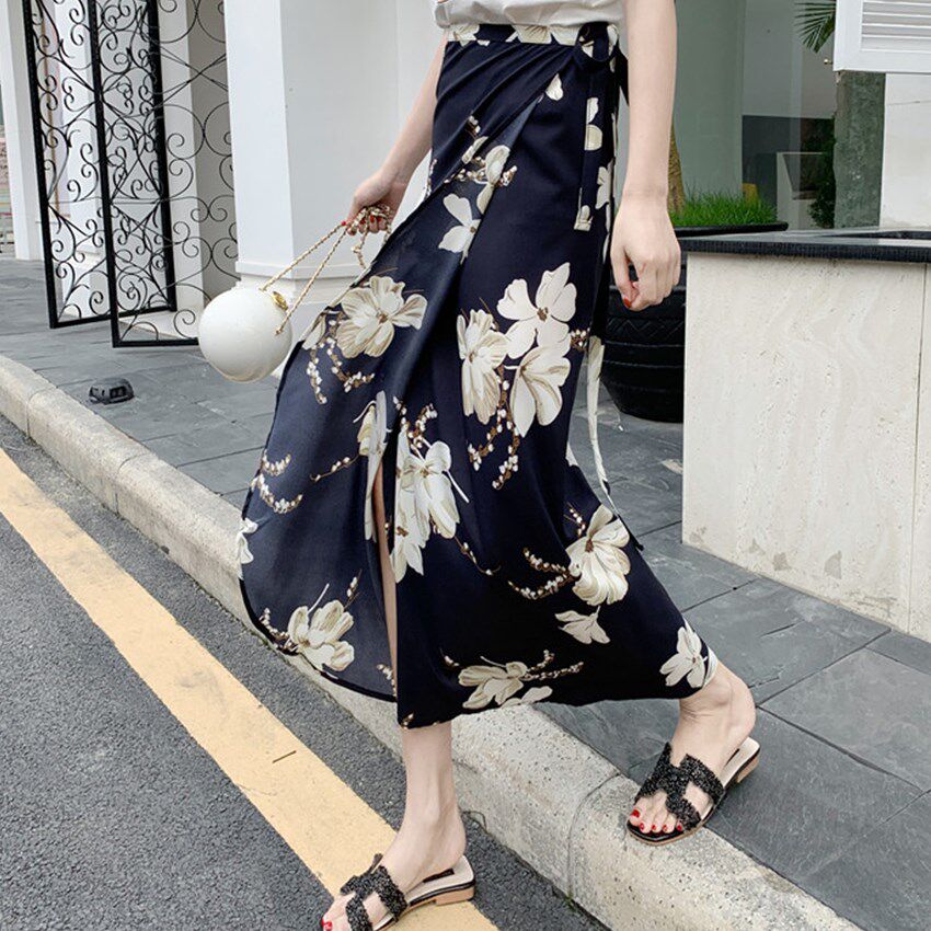 一片式 半身裙雪纺裙女夏高腰显瘦波西米亚海边度假裹裙碎花长裙子