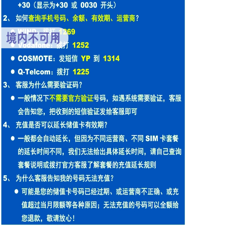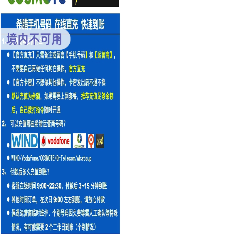 WIND 话费 Vodafone MYQ电话号码 官方直充 COSMOTE 希腊手机充值