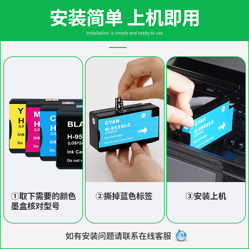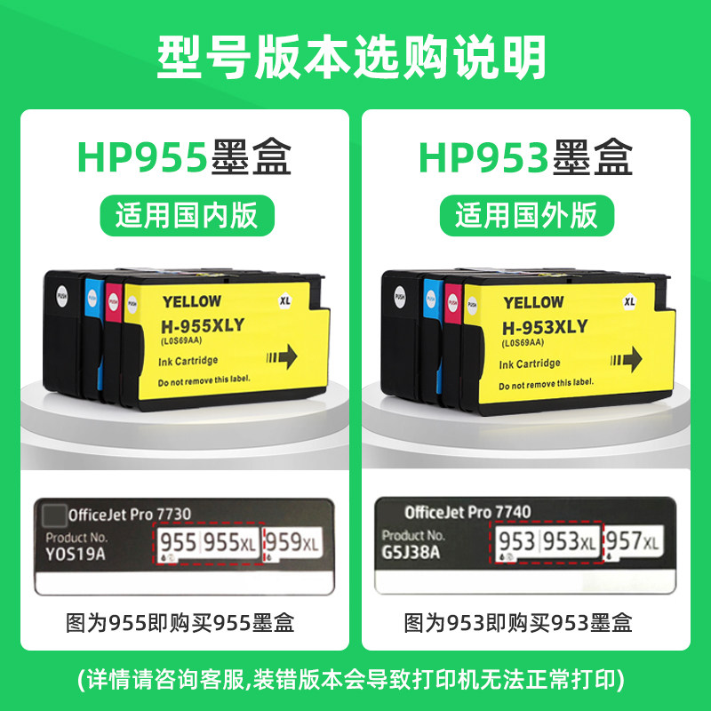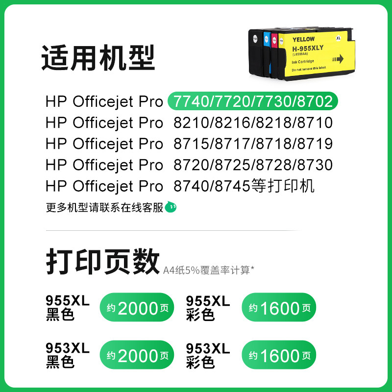 8720 芯片 7740墨盒7720 8740打印机非原装 8730 8725 8710 8216 7730彩色墨水盒Pro8210 955xl 适用hp惠普953