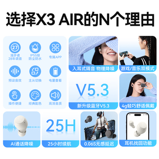 Air3真无线蓝牙耳机半入耳式 TWS 音乐游戏运动AI降噪 iQOO vivo