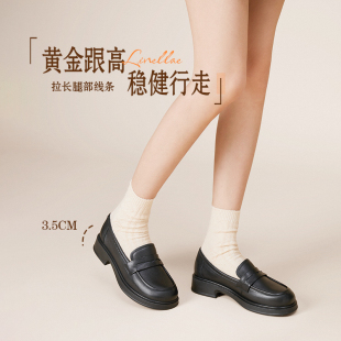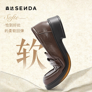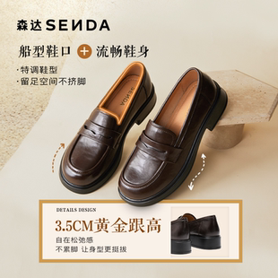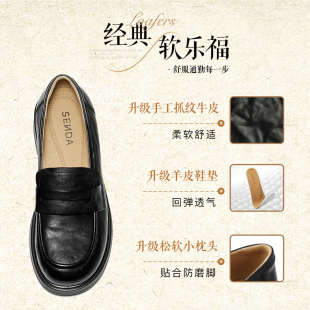 通勤牛皮黑色厚底女鞋 森达真皮新款 英伦软底皮鞋 女商场同款 乐福鞋