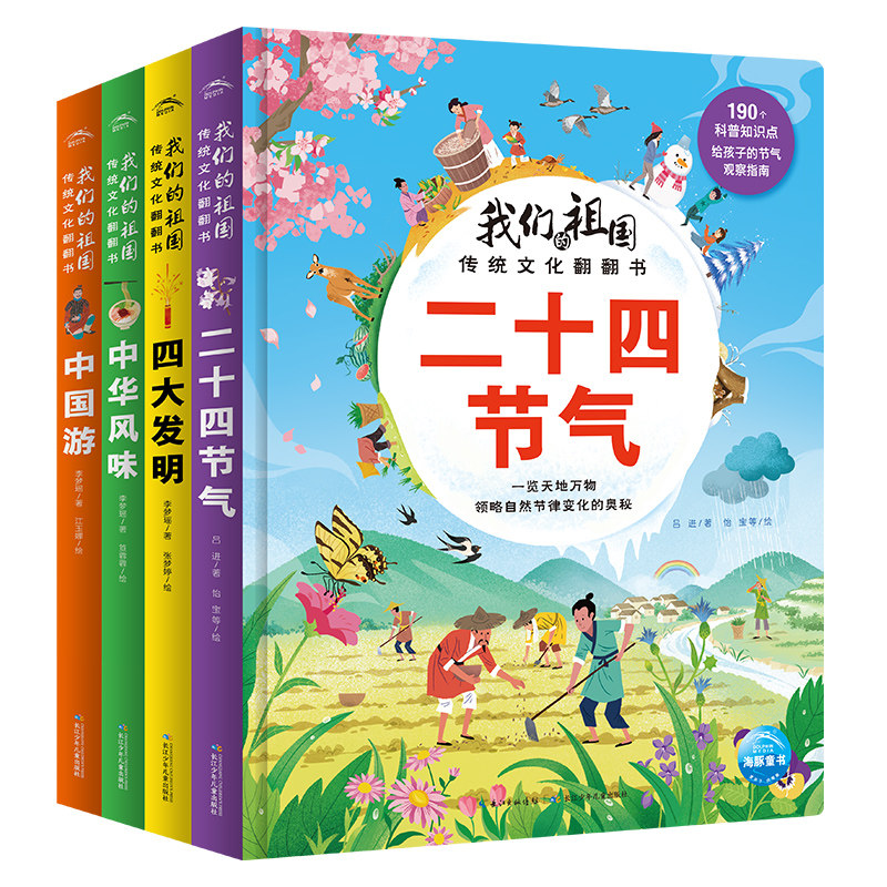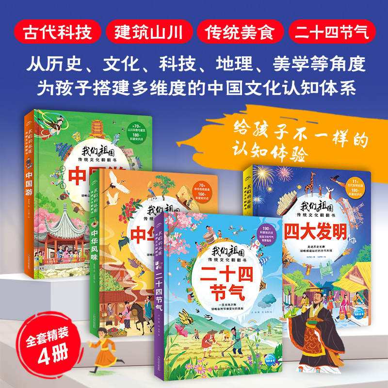 硬壳全套4册二十四节气四大发明中华风味美食趣味阅读3 祖国传统文化翻翻书绘本撕不烂精装 我们 6岁中国民间故事图书 新华文轩