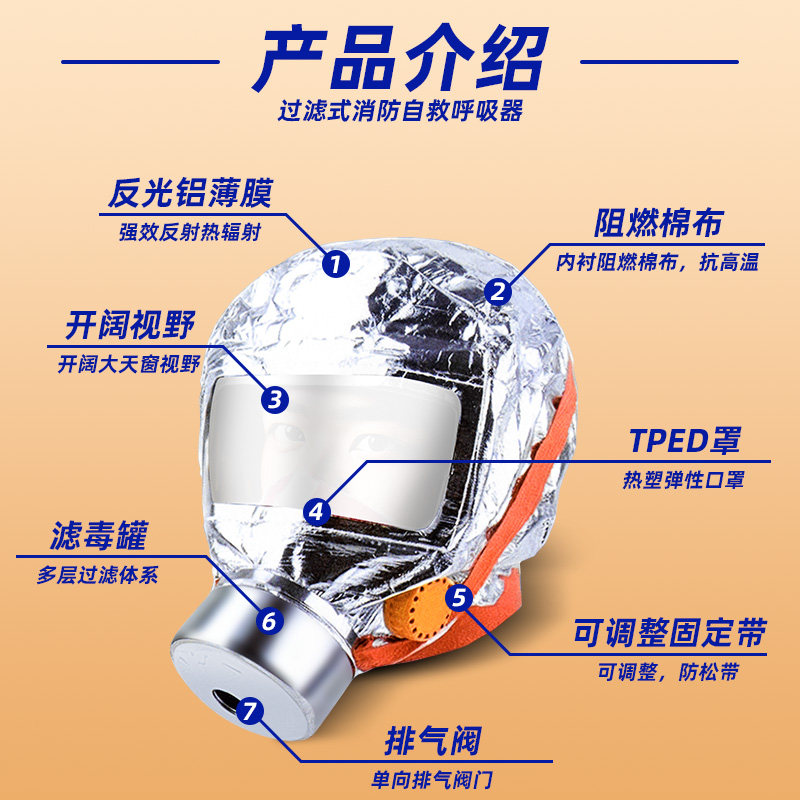 消防面具防毒防烟防火面罩酒店宾馆家用火灾逃生过滤式 自救呼吸器