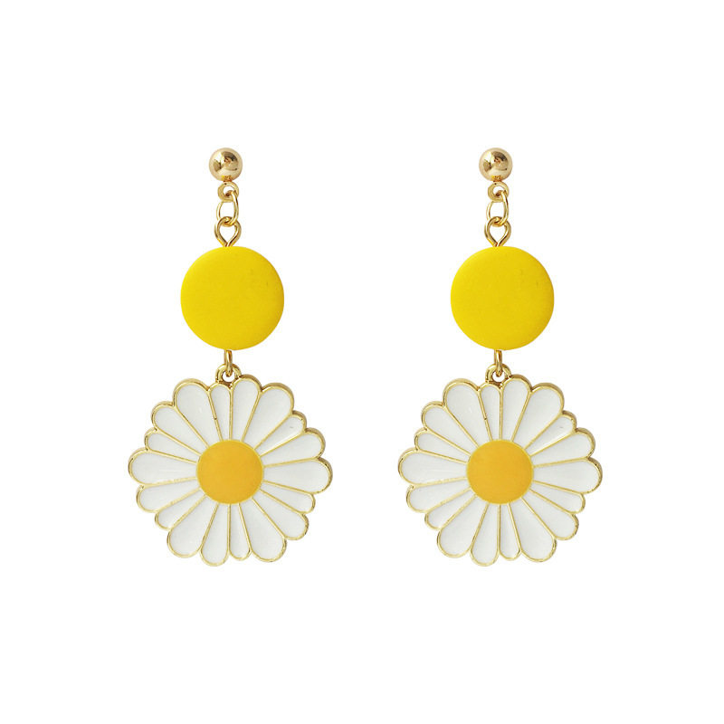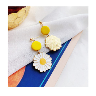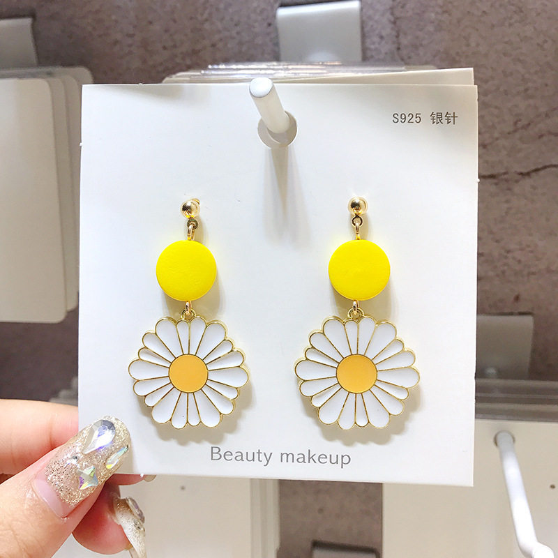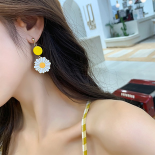潮 超仙花朵耳坠网红耳环女2024新品 夏天 黄色雏菊耳钉气质长款