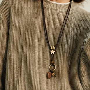 秋冬美拉德串珠虎眼石款 吊坠项链女复古气质毛衣链轻奢高级感配饰