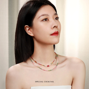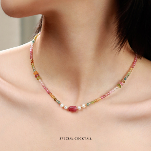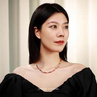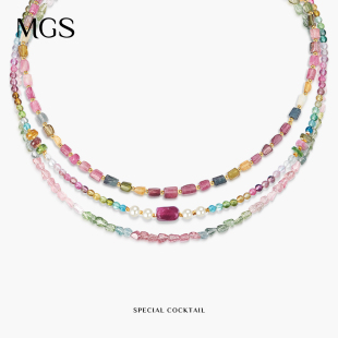 MGS 中国风女水晶颈链 曼古银多巴胺锁骨链糖果色碧玺项链串珠时尚