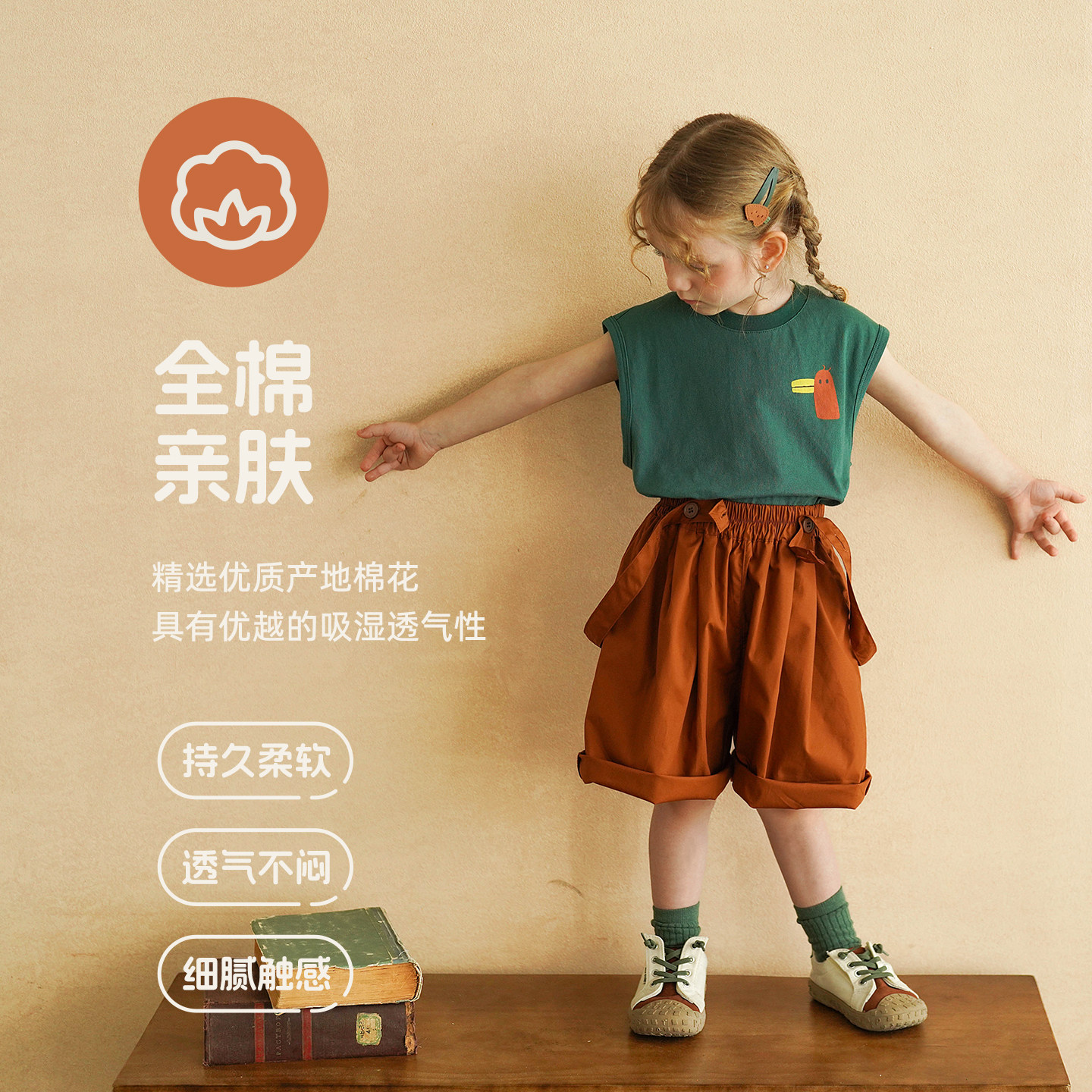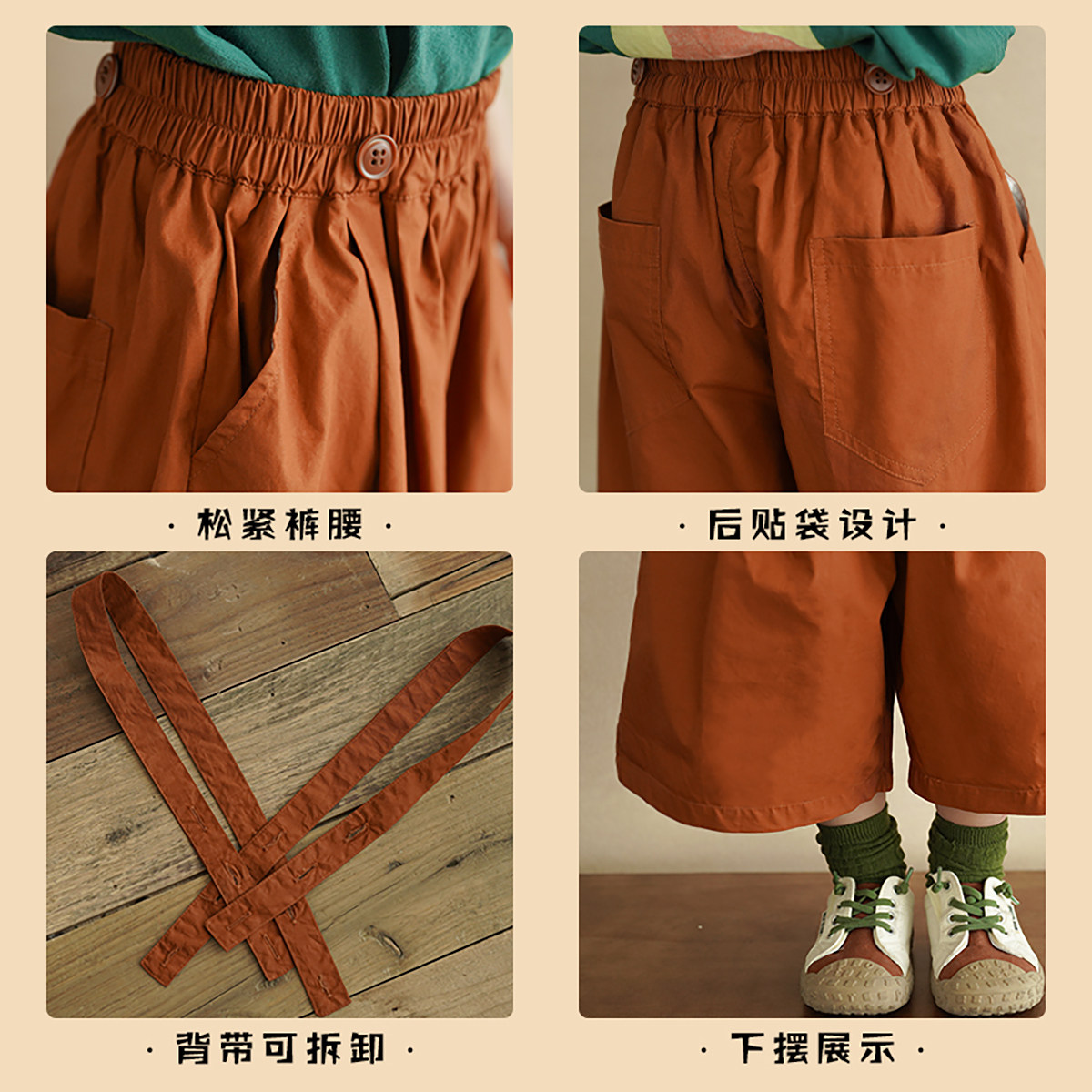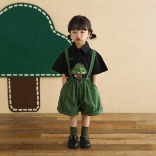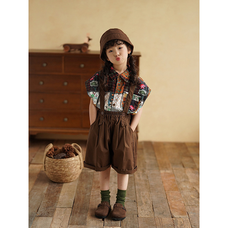 儿童短裤 童装 夏装 中小童宽松轻薄五分裤 新款 砚台家女童纯棉背带裤