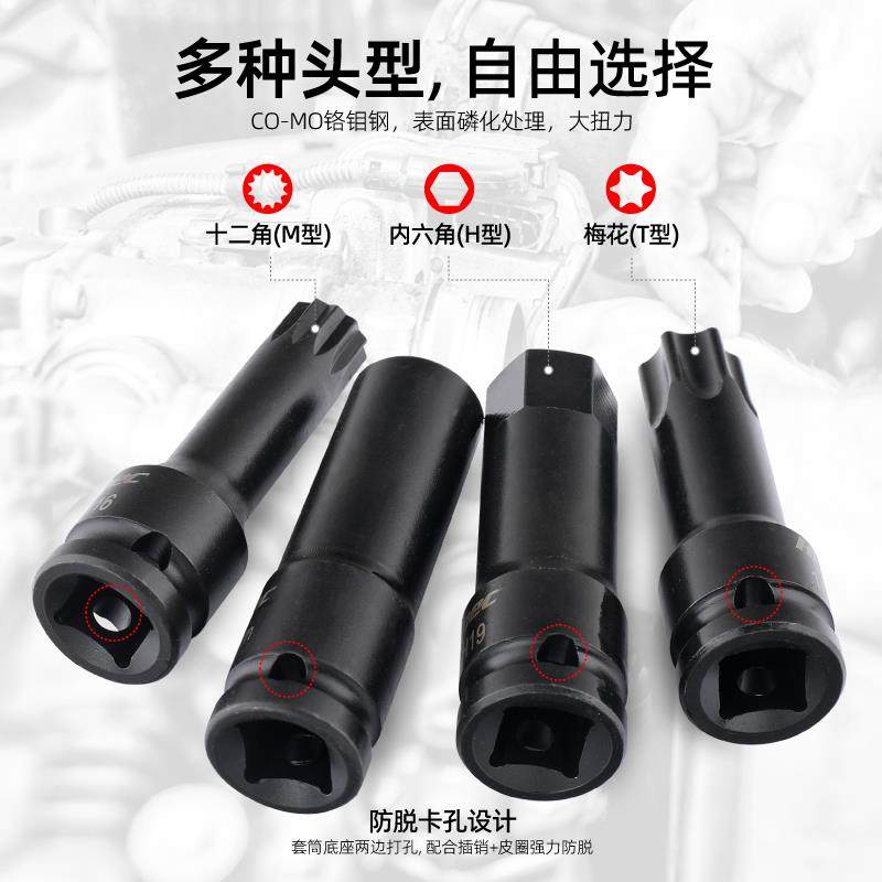 风炮内六角套筒电动扳手 t30t40t50梅花批头m10m14内六角工具套装