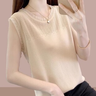 打底t恤 洋气别致镂空显瘦无袖 圆领冰丝针织背心女士2024夏季 新款