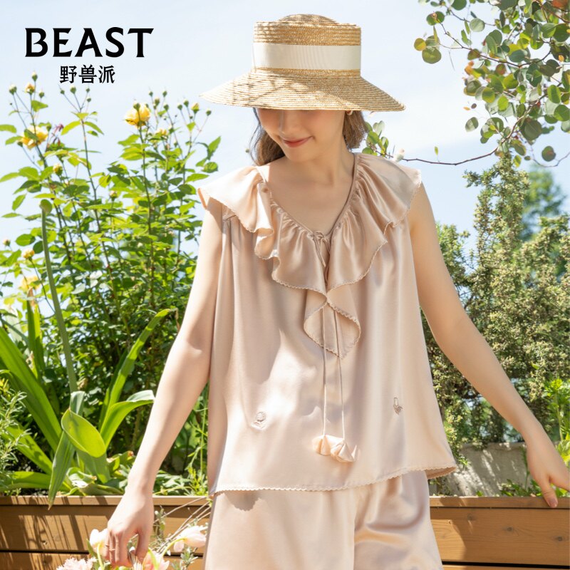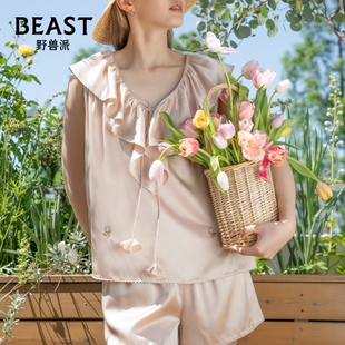 野兽派小小郁金香22姆米真丝背心短裤 生日礼物 套装