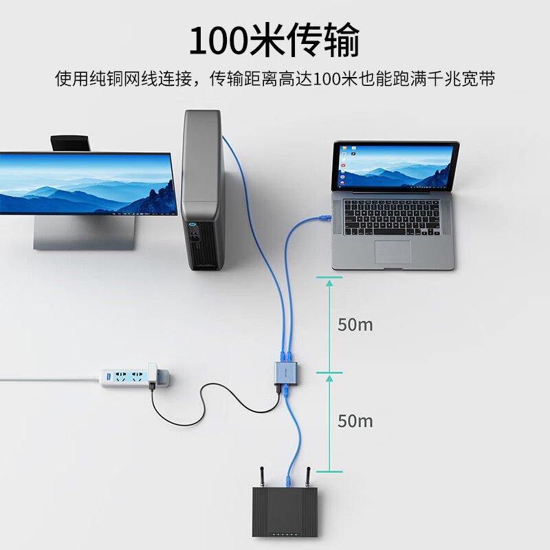 绿联hdmi分配器一分二同时显示一进二出分屏器4k高清线接电脑音视频信号分频转换一拖二扩展切换画面同屏共享