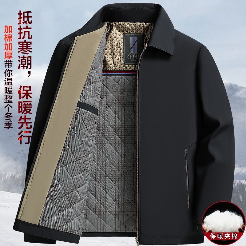 中老年人夹克衫 爸爸装 夹棉外套轻薄二棉衣服秋冬季 啄木鸟中年男士