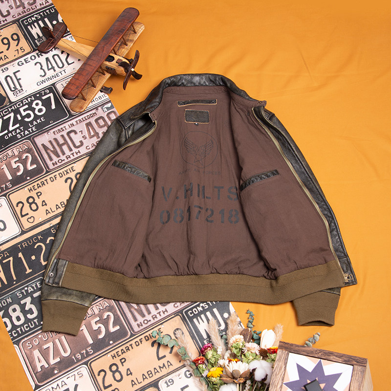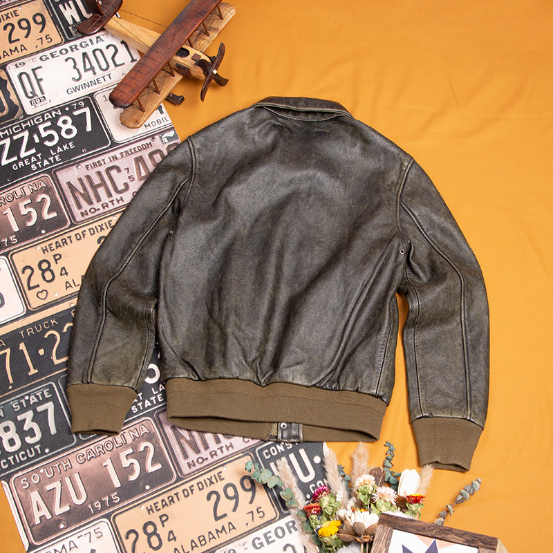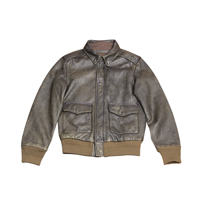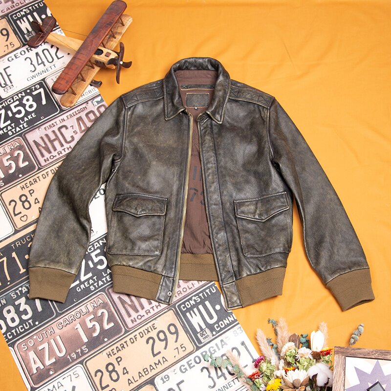 美式 外套春秋飞行员皮衣 复古A2做旧真皮夹克轻涂头层牛皮翻领男士