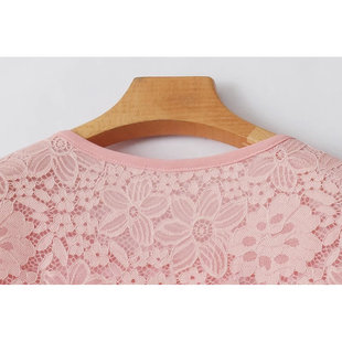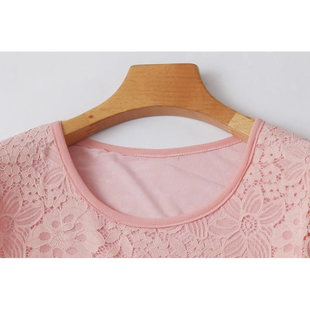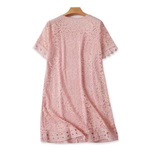 圆领上衣女外贸短袖 蕾丝钩花镂空连衣裙 中长款 新款 裙子13231 夏季