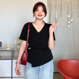 胖mm夏季 女装 显瘦特别漂亮 掐腰短袖 上衣2049 微胖 衬衫 喵喵大码