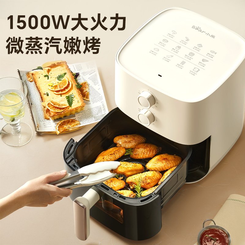 苏泊尔空气炸锅双热源家用6L大容量免翻面低音可视多功能蒸汽炸锅