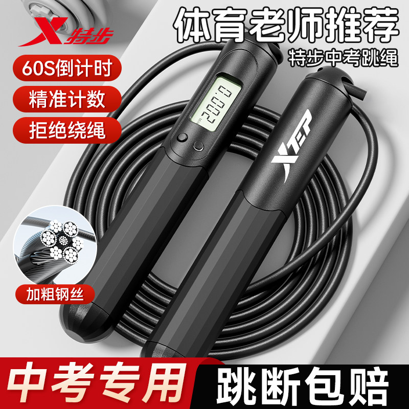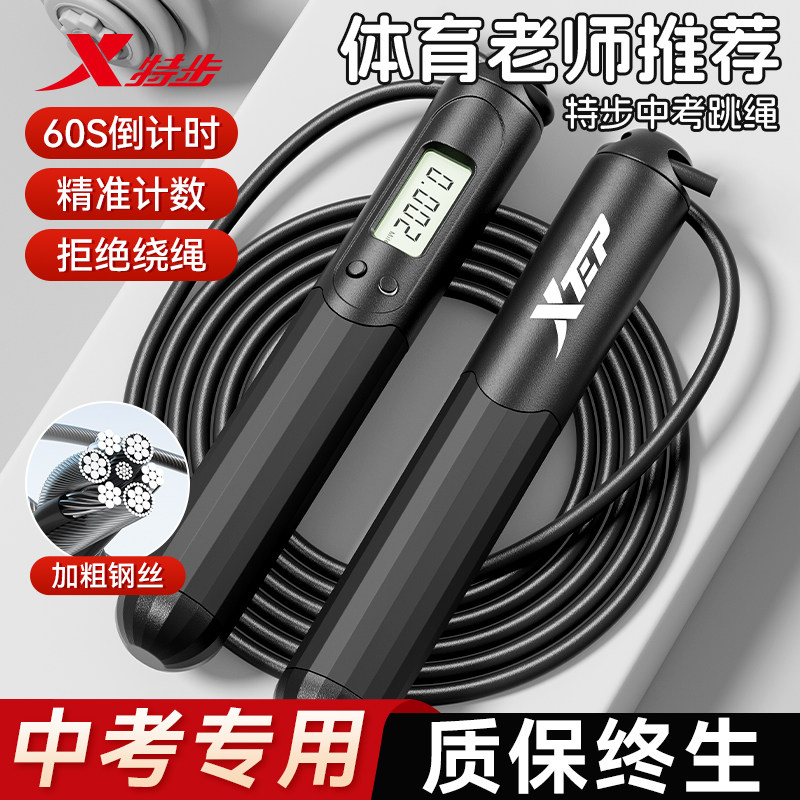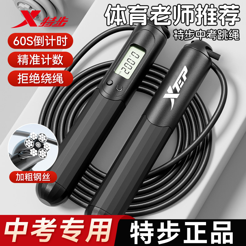 特步跳绳中考专用学生计数初中生体育考试减肥钢丝绳计时体考标准