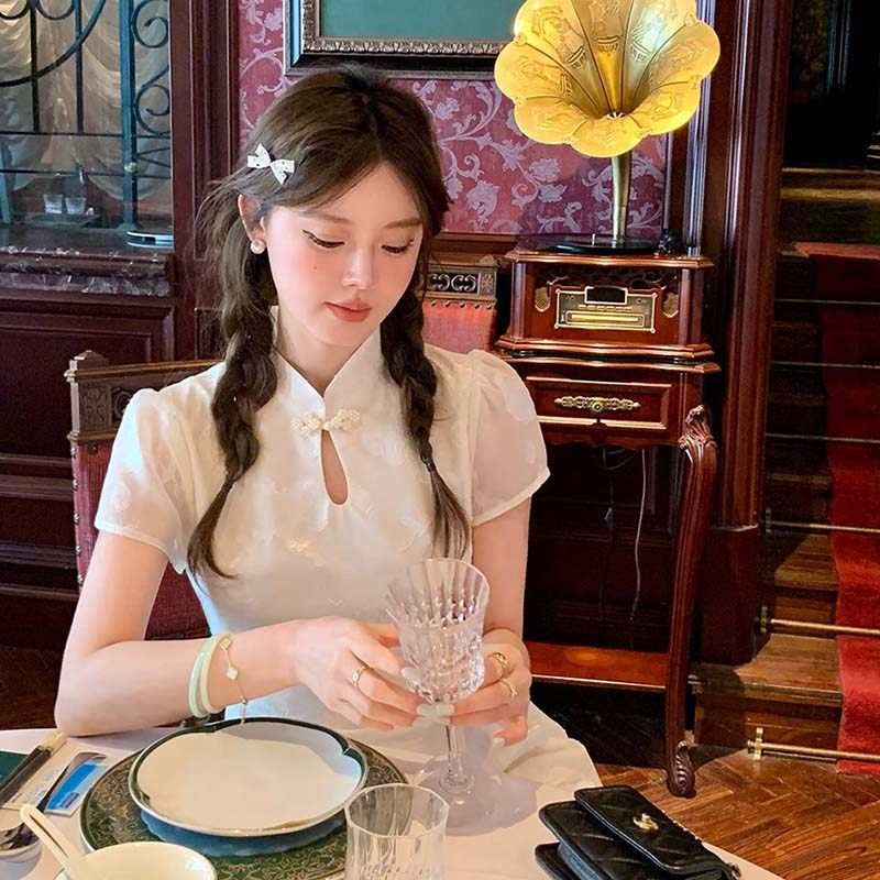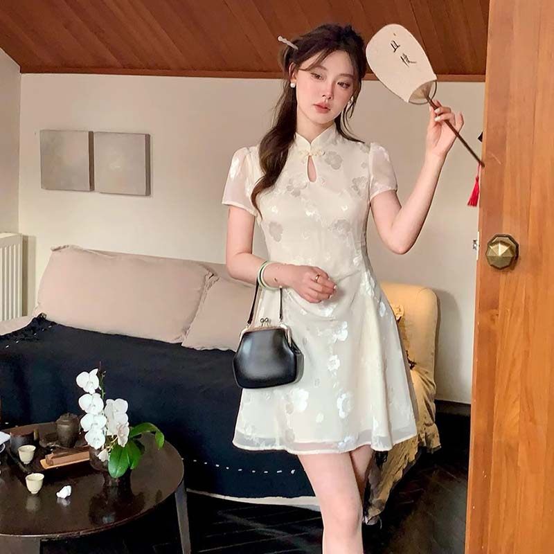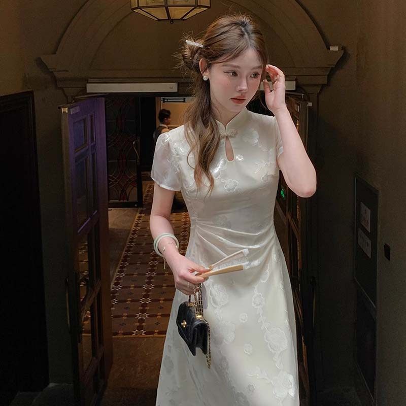 连衣裙女收腰a字气质订婚裙D2552 国风旗袍裙改良新中式 有里布
