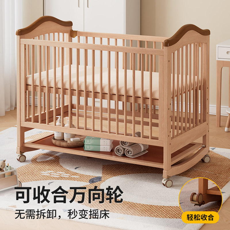 牧童坊婴儿床实木拼接床多功能摇篮新生小床可移动儿童宝宝床