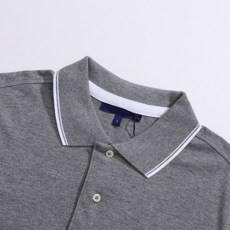 棉翻领套头休闲商务上衣 F3772恺男式 T恤 短袖 灰色 夏季