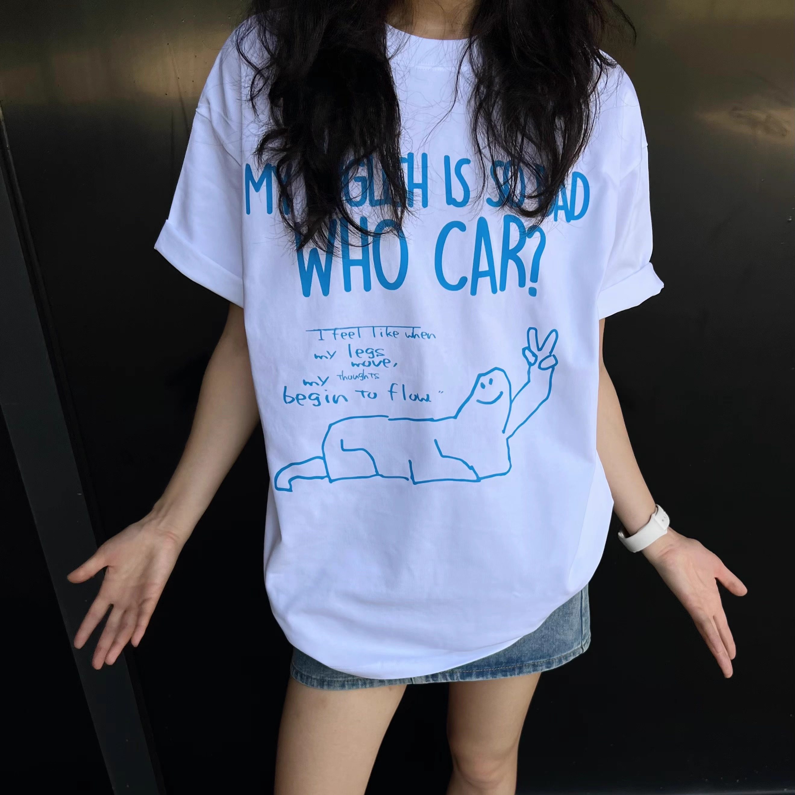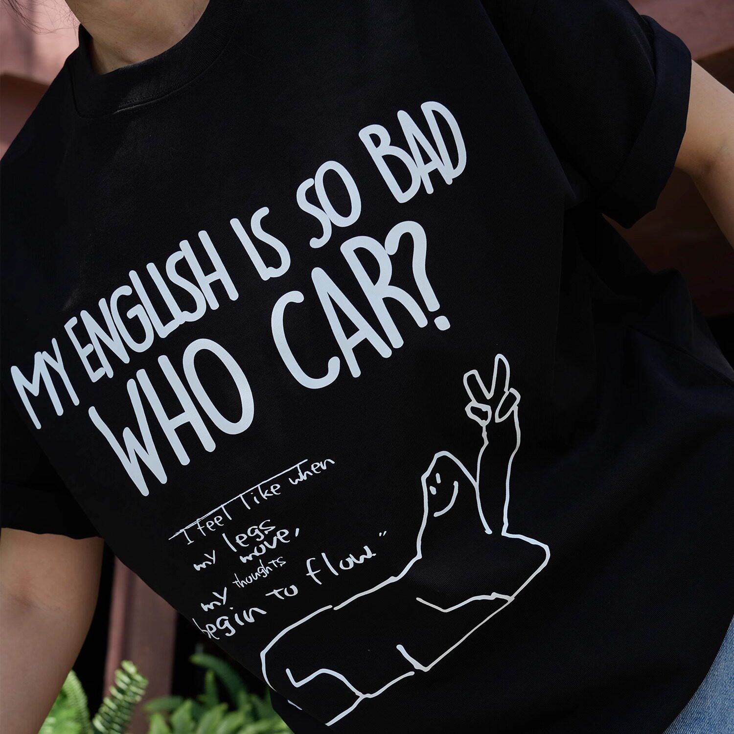 黑白色纯棉宽松短袖 Talktokey 趣味恶搞 英语不好 T恤男女 TTO