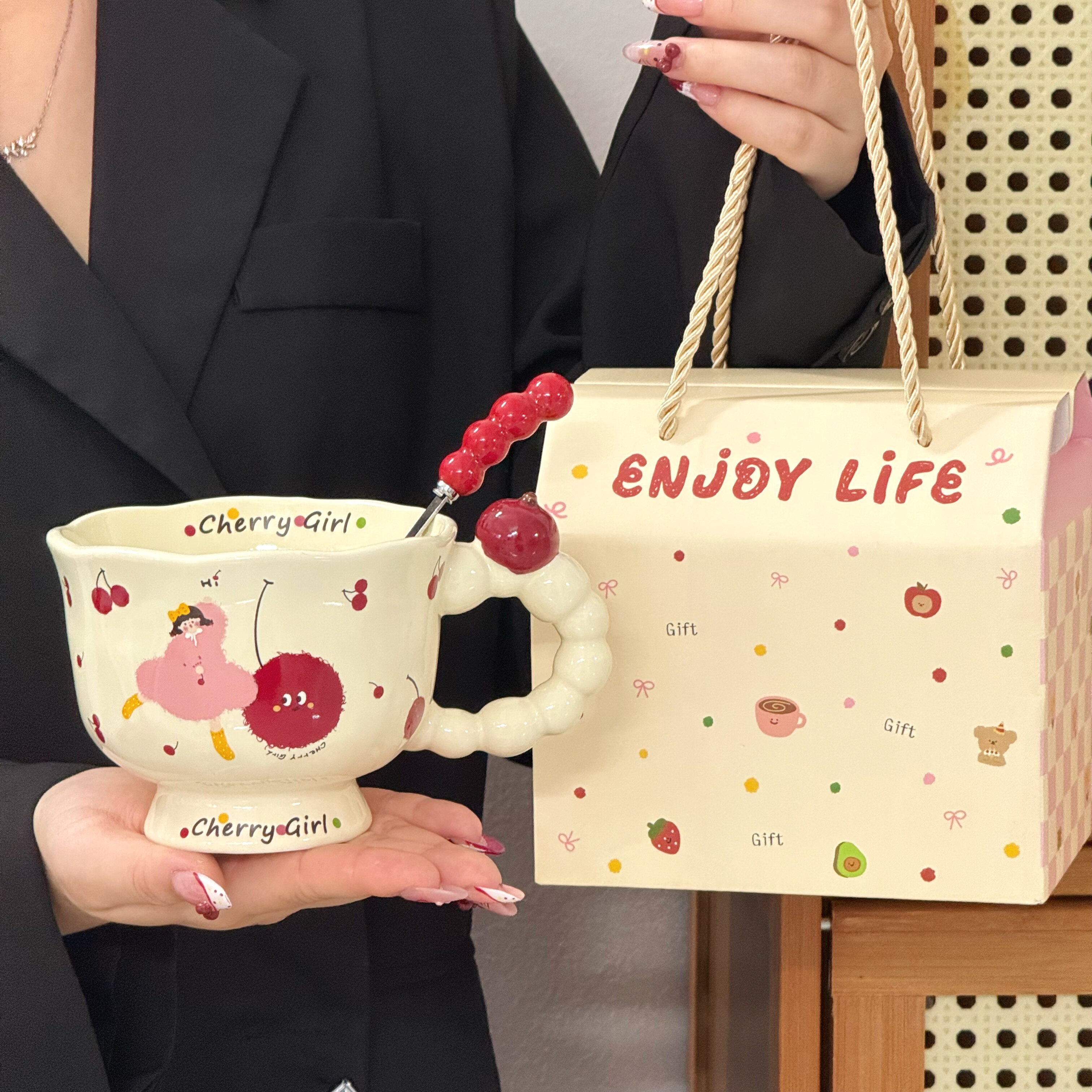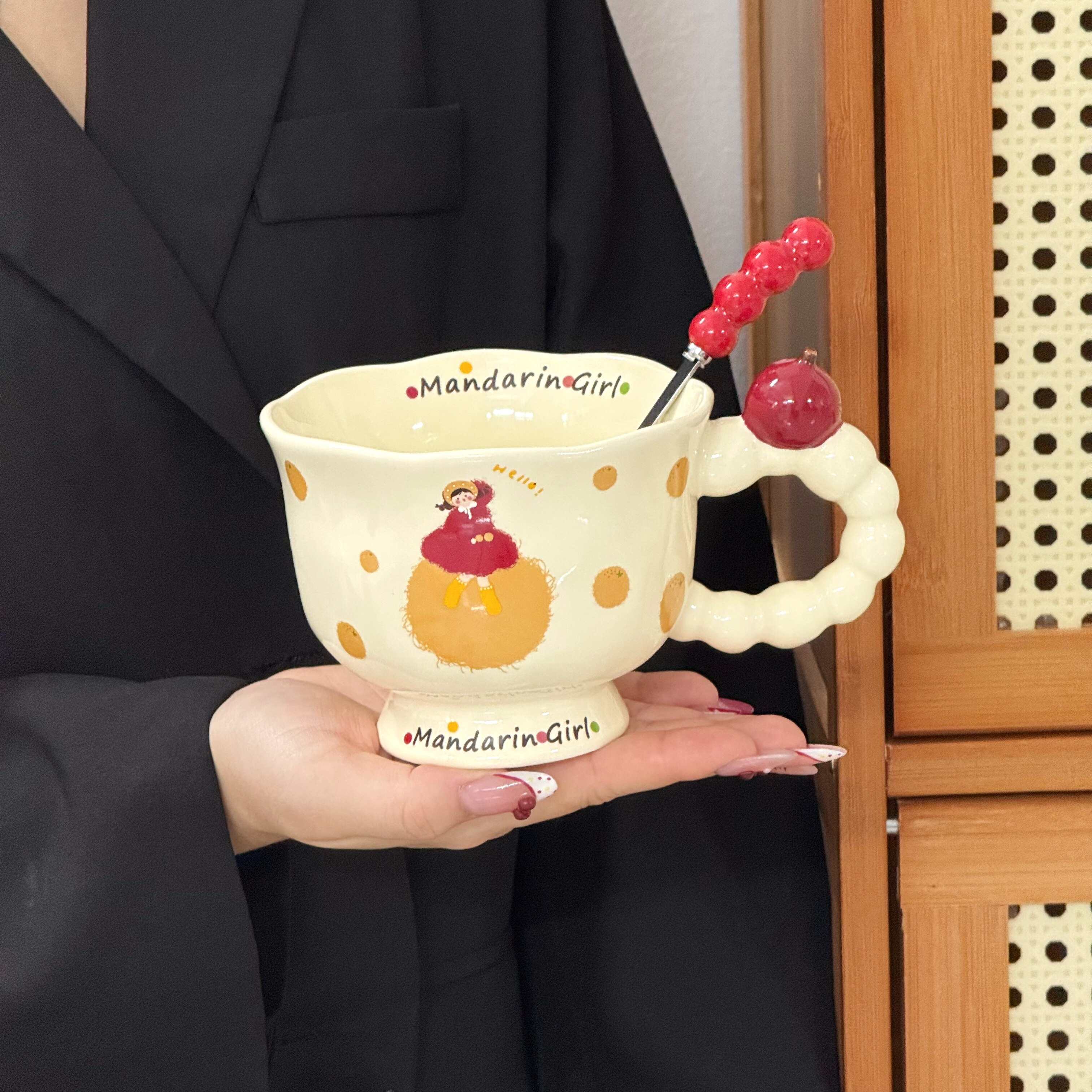 大容量可爱陶瓷水杯喝茶潮流男女生家用马克杯牛奶咖啡杯子带盖勺