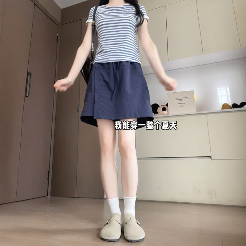 裤 藏青色冰丝山本短裙裤 五分a字运动工装 胖mm小个子夏季 裙 女大码
