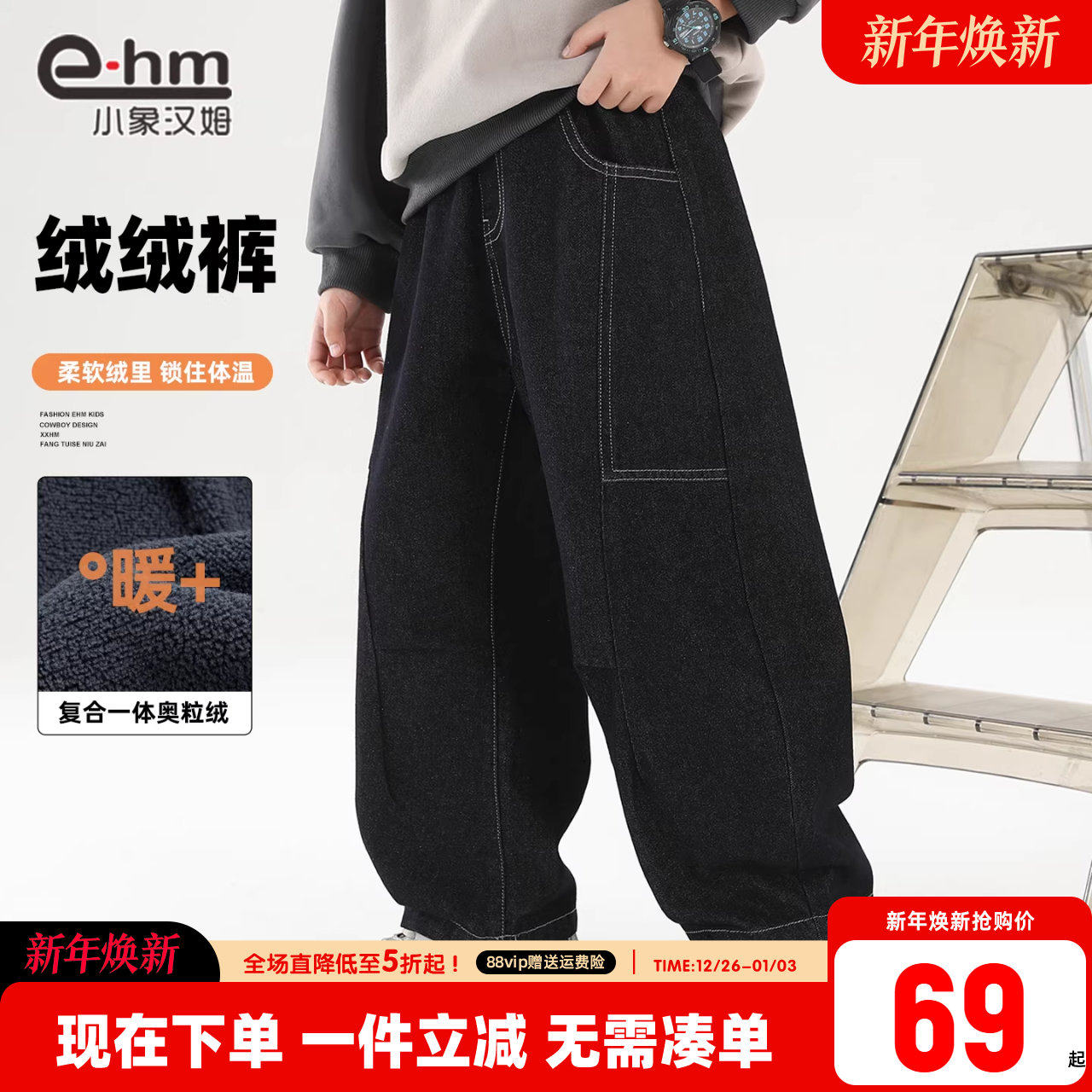 男童加绒牛仔裤 长裤 儿童秋冬裤 儿童冬装 潮 子2025新款 小象汉姆童装