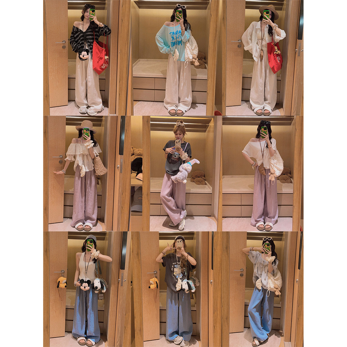 子 女夏韩系小个子宽松遮肉显瘦裤 Yukiss 紫色亚麻直筒阔腿休闲裤