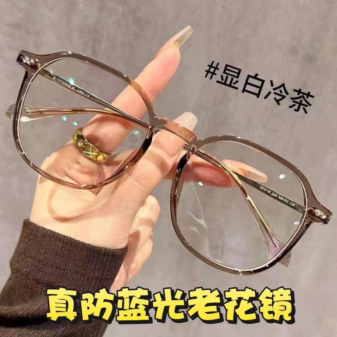 超轻大框冷茶色老花眼镜女智能变焦素颜神器多边形眼睛防蓝光