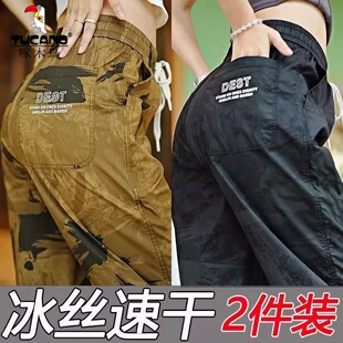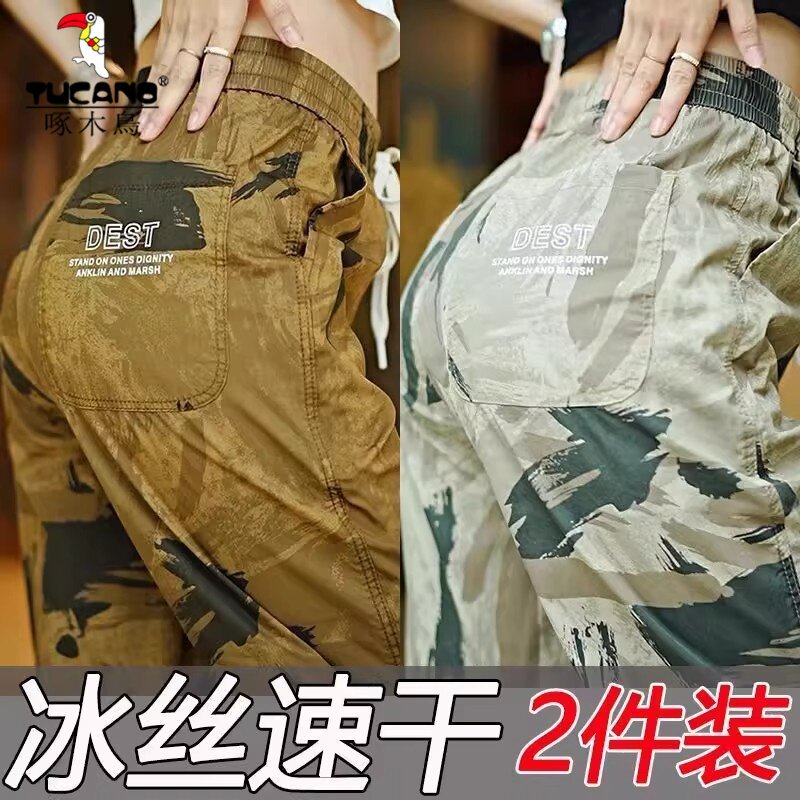 夏季 运动速干裤 薄款 宽松迷彩束脚工装 新款 啄木鸟冰丝速干男休闲裤