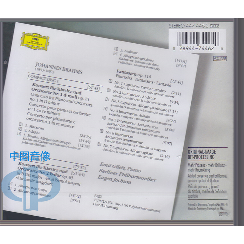 中图音像 4474462 环球 2CD 进口现货 布拉姆斯:钢琴协奏曲