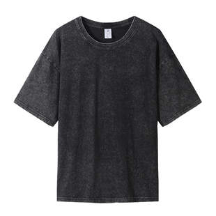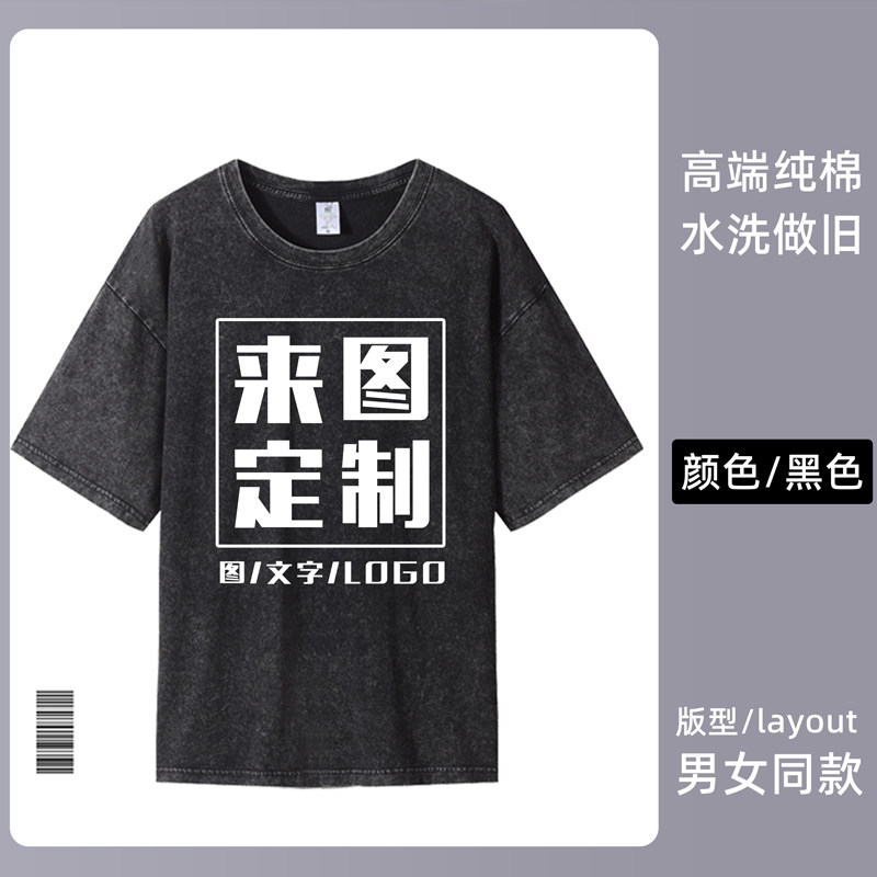 美式 纯棉印制印字logo图工作服团队上衣夏t 复古水洗做旧T恤男短袖