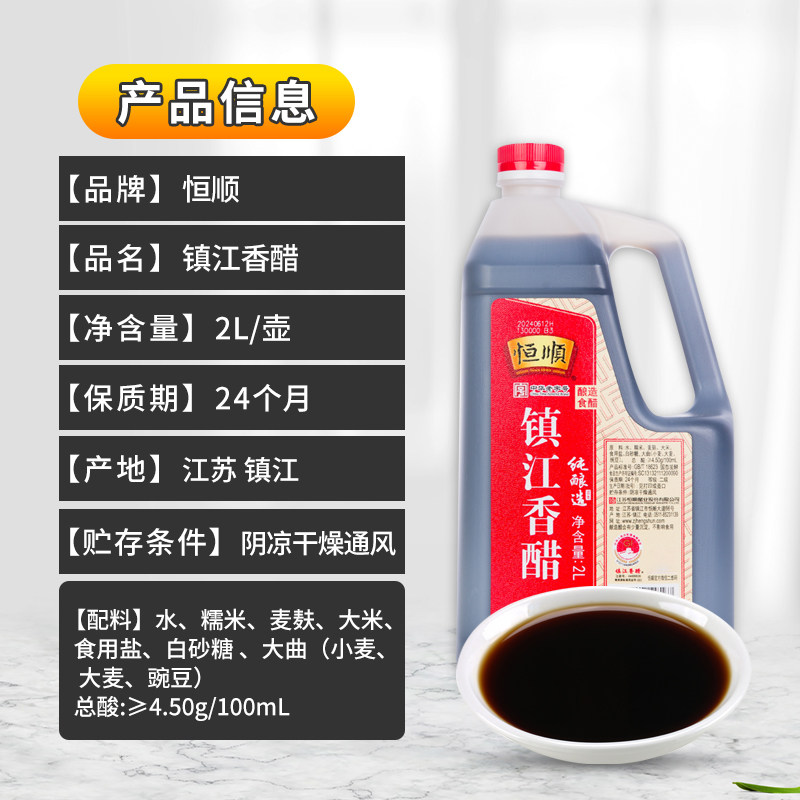 恒顺镇江香醋2L餐饮厨房酿造食醋家用凉拌饺子醋食用醋调味料