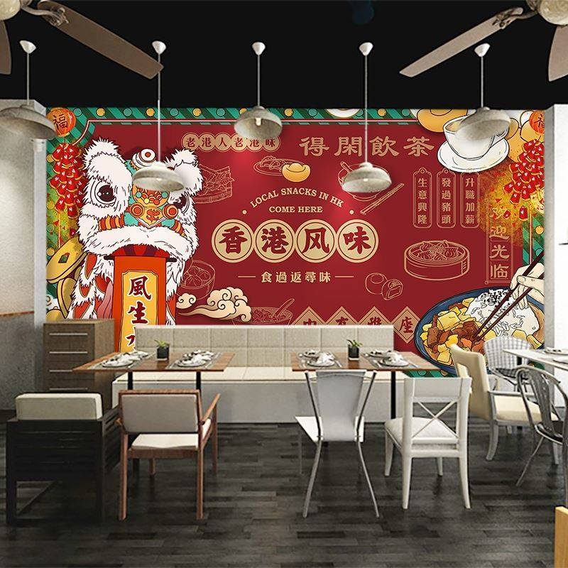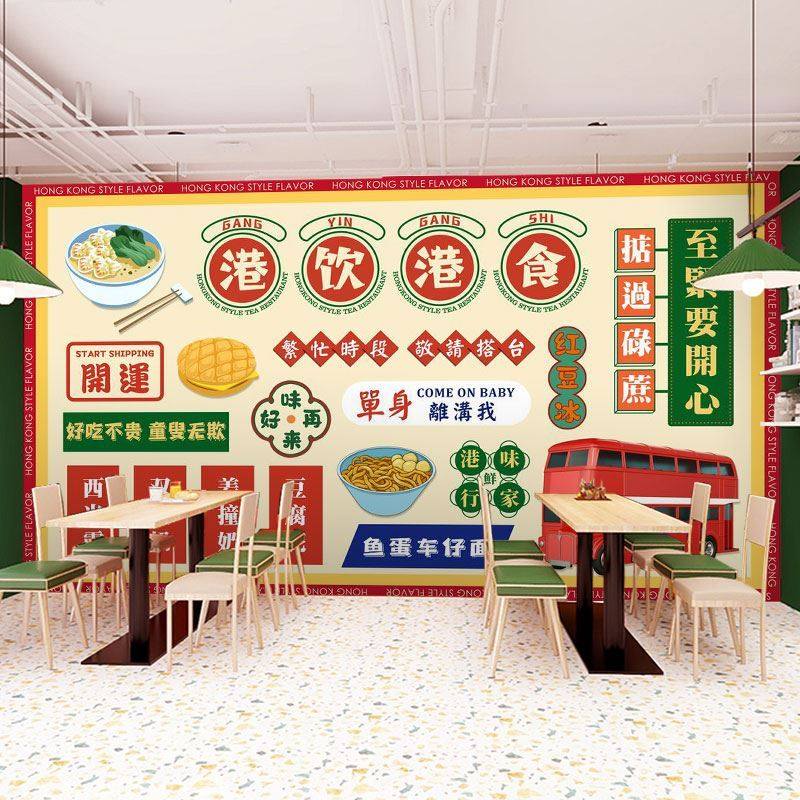 饰背景墙纸 茶餐厅装 粤式 早茶点心壁纸香港早餐店酒楼茶楼海报港式