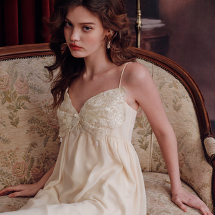 设计感蕾丝吊带长款 法式 连衣裙睡裙居家服女夏 蝶梦初醒 LaceMade