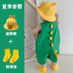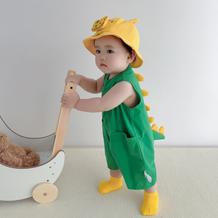 多巴胺穿搭婴儿衣服夏季 爬服卡通男女宝宝连体衣外出服哈衣萌 无袖