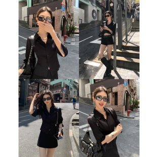 显瘦衬衫 MULVAN 修身 极简白色七分袖 女高级感衬衣 办公高智强气场