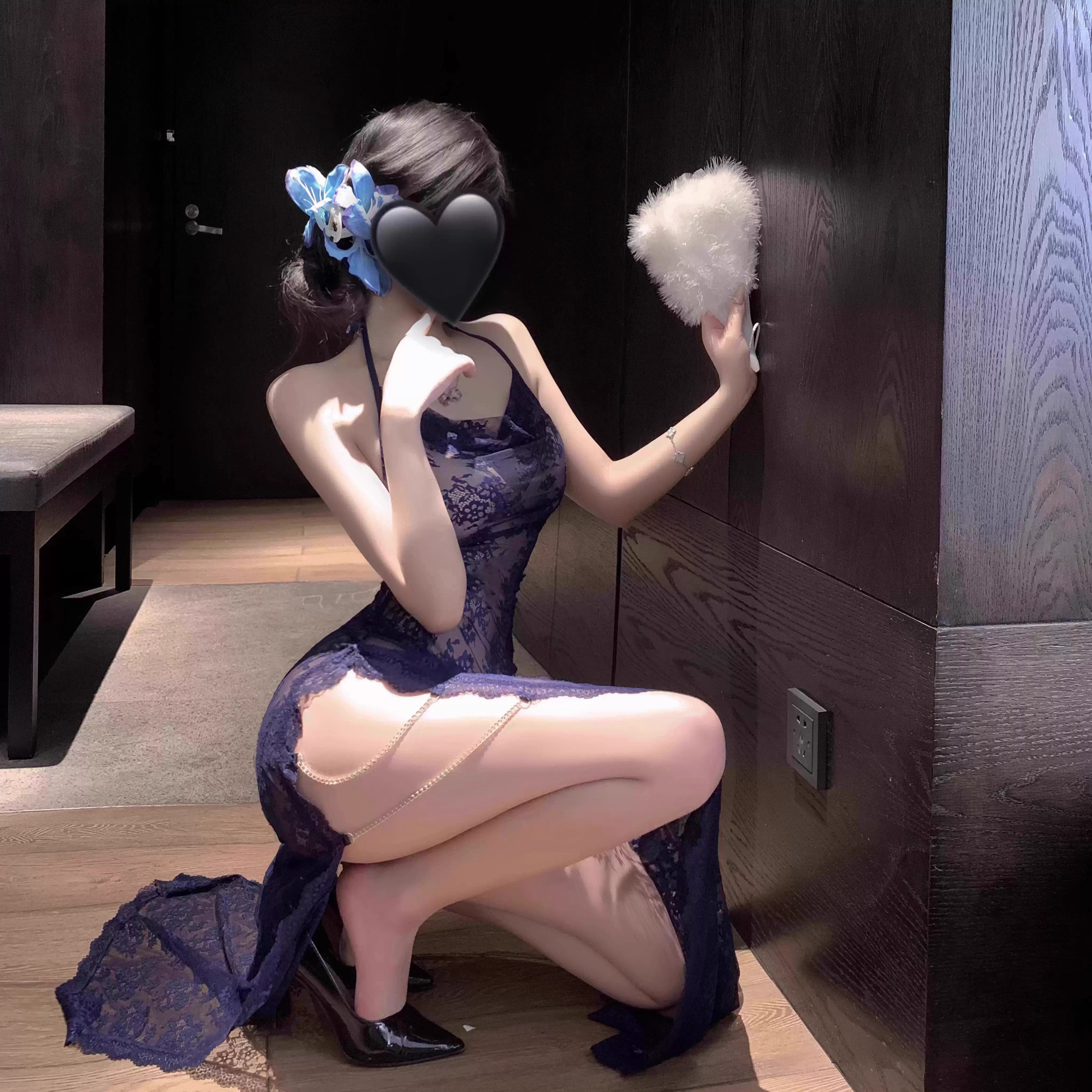 缠绵梦 蕾丝朦胧感高开叉旗袍裙若隐若现女链条性感睡衣 性感大码