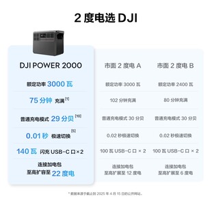大疆户外移动电源220v大容量2度电3000W大功率DJI 2000自驾游车载露营摆摊储能磷酸铁锂便携电源蓄电池 Power