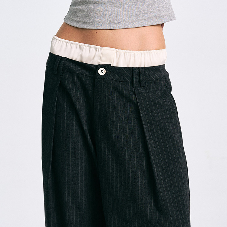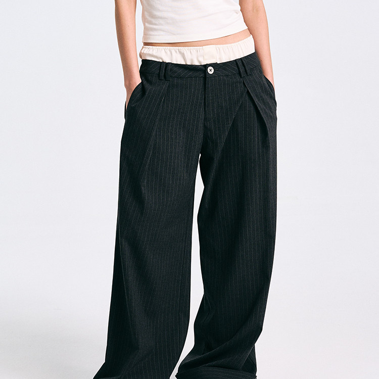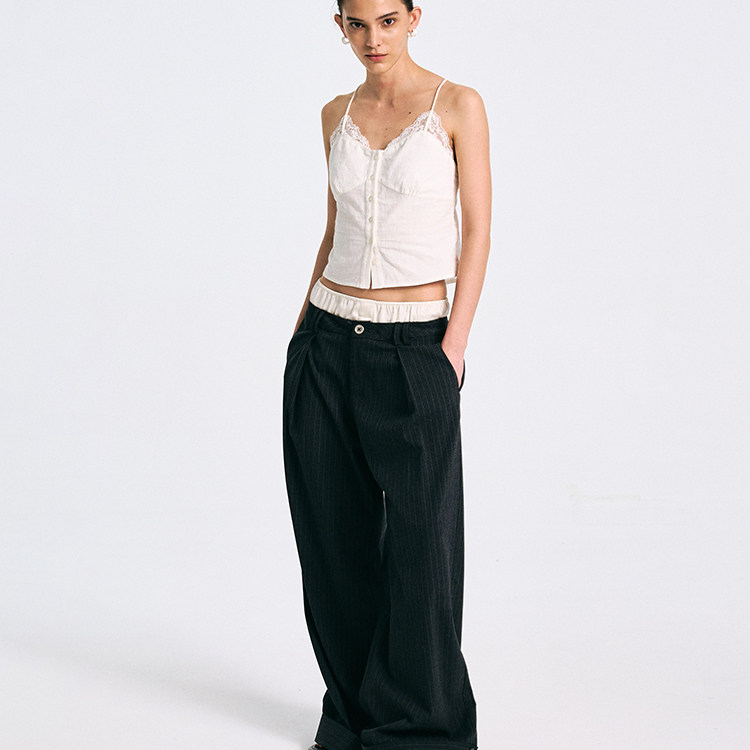 Howwell25SS春夏双层拼接假两件竖条纹脊线条纹百搭 刘恋同款