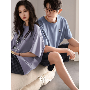 卡通米奇男凉感大码 迪士尼夏季 纯棉套装 薄款 家居服 情侣睡衣女短袖